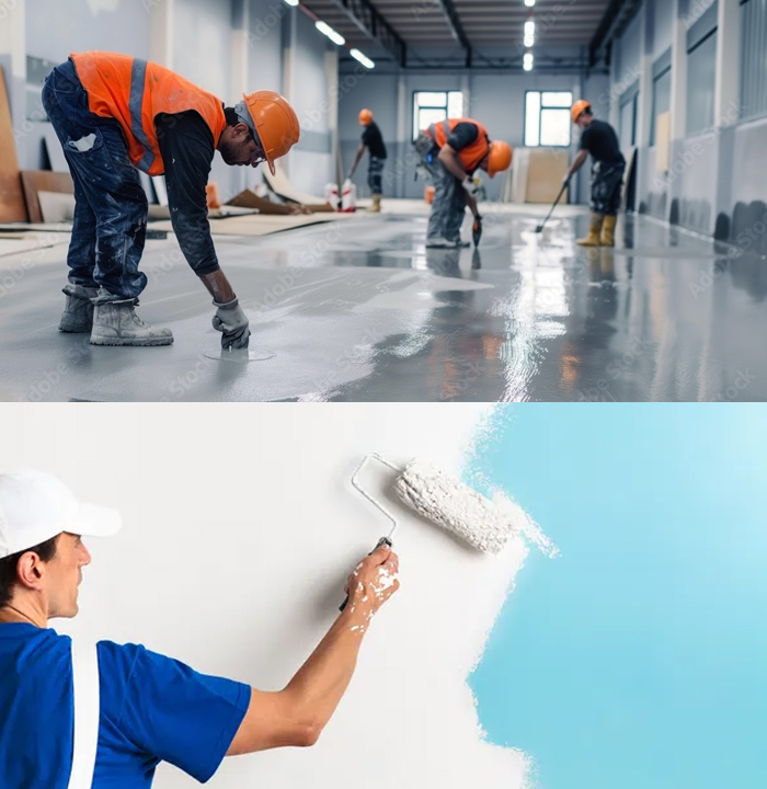 General construction, interior design and fitout, electrical, oil & gas field services, infra works, plumbing, Hvac, fire alarm and fire fighting, facility maintenance, steel fabrication, wall and floor painting, waterproofing, Aluminium and glass, landscaping.